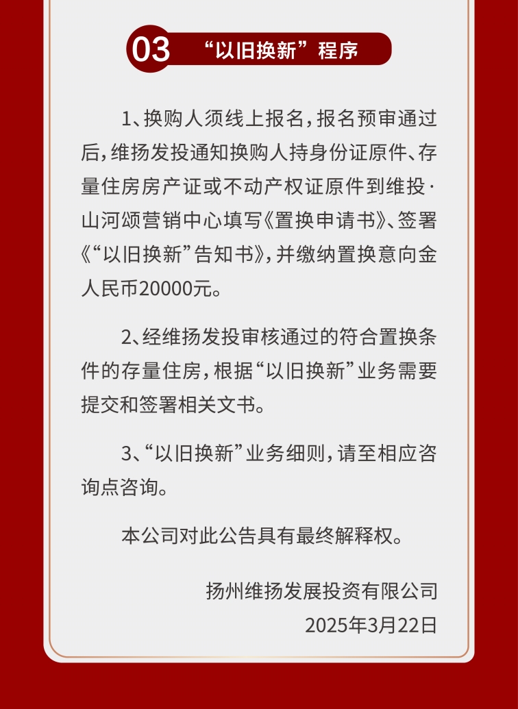 隨著培土奠基儀式的完成,維投·山河序正式駛?cè)虢ㄔO(shè)快車道,項(xiàng)目即將開(kāi)售。結(jié)合維揚(yáng)發(fā)投推出的以舊換新3.0政策,多維度降低了改善門檻。項(xiàng)目以墅質(zhì)產(chǎn)品哲學(xué),呼應(yīng)城市奮斗者對(duì)品質(zhì)人居與生活理想的雙重追求,以國(guó)企匠心為揚(yáng)州人居史鐫刻濃墨重彩的“山河序章”。